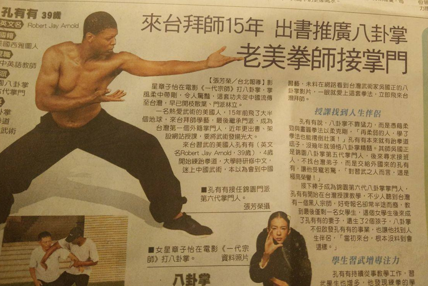 The title reads, “After 15 years of diligent training, American Robert Jay Arnold is appointed as Head Master of Bagua.”