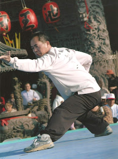 My instructor was and still is Master Wu Guo Zheng, who proceeded to teach me such an abundance of movements that it often caused many students to have minor panic attacks just before class. 25 Evasive Steps, 2 different circles (12 movements apiece), the Stealth Tiger Saber, 6 Harmony Saber, 6 Connecting Kicks, Qing Ping Sword, Guandao, Baji, Taichi, 64 Palms, 64 counters, 128 movements with the staff, 126 movements with the spear, Hooks, Short Sticks, Fist of No Extremes, 12 Steps of Power, and on and on and on.